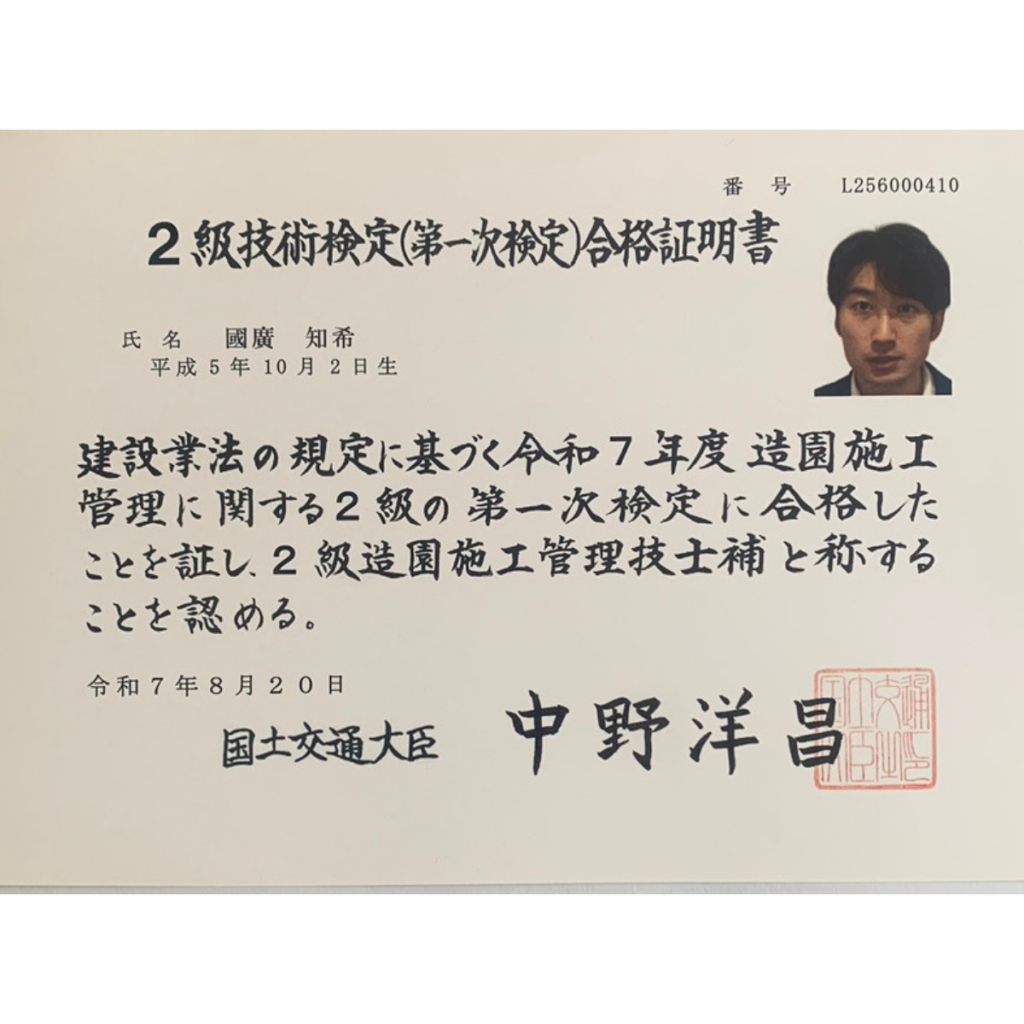 - 2級造園施工管理技士補(2級造園施工管理技術検定一次検定合格)
